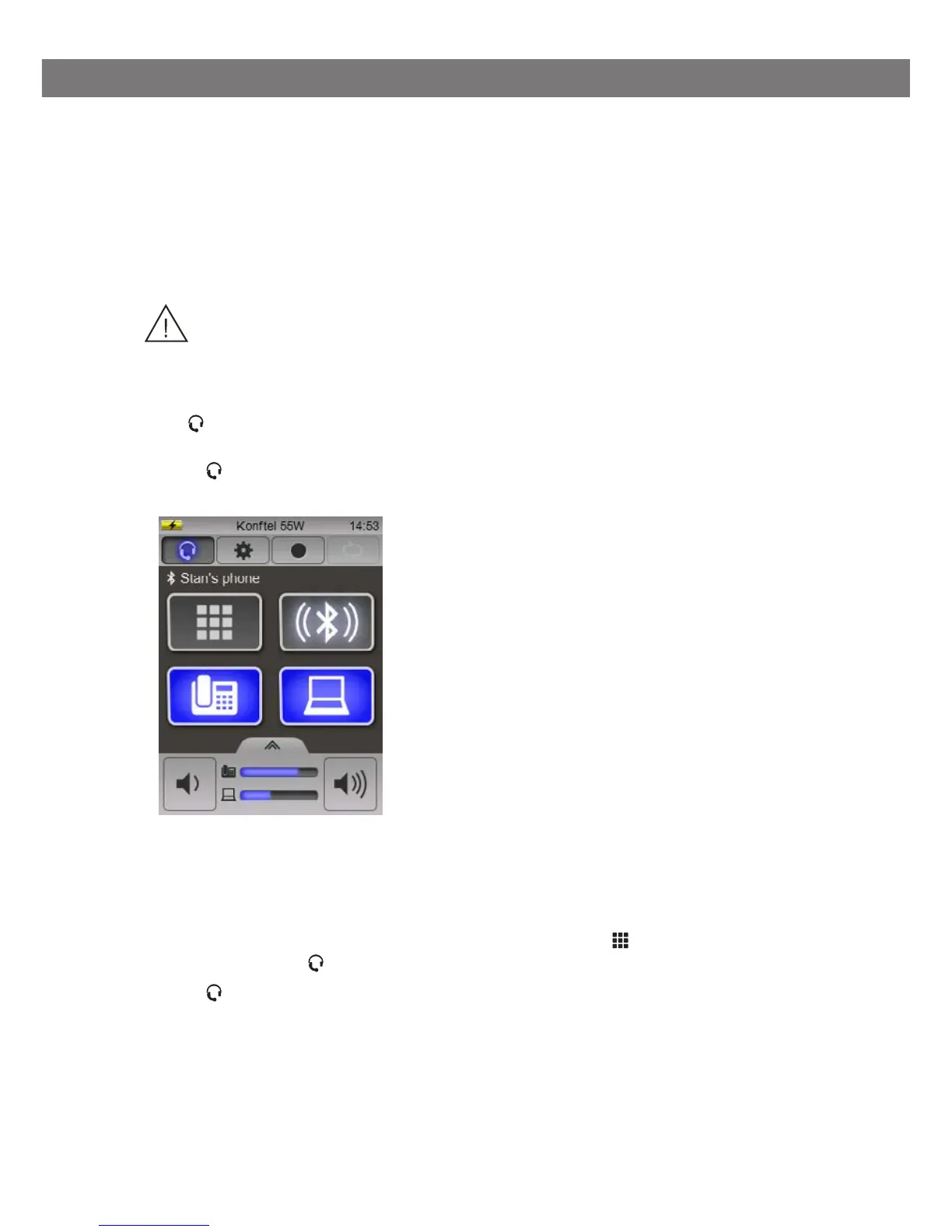 Press to switch between sending the sound to the headset or to the Konftel 55W.