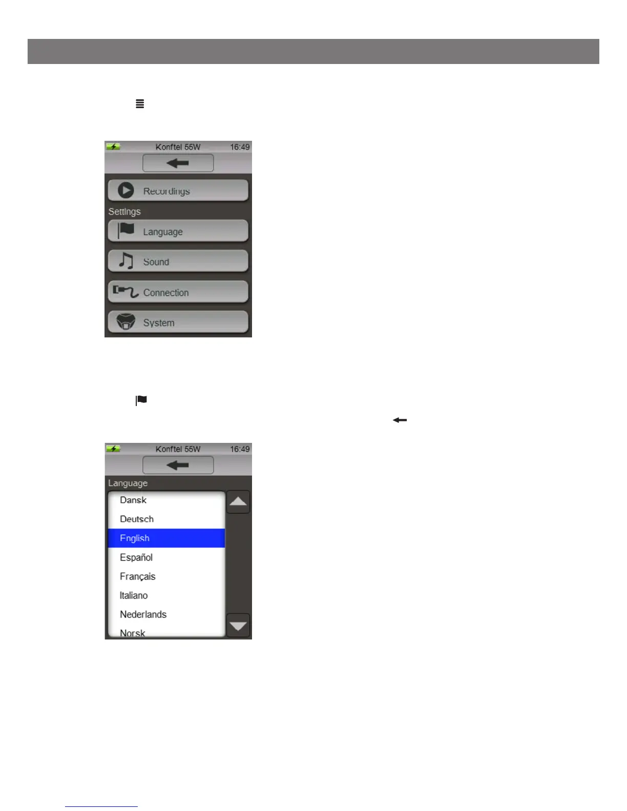 Konftel 55W - Settings; Changing Languages