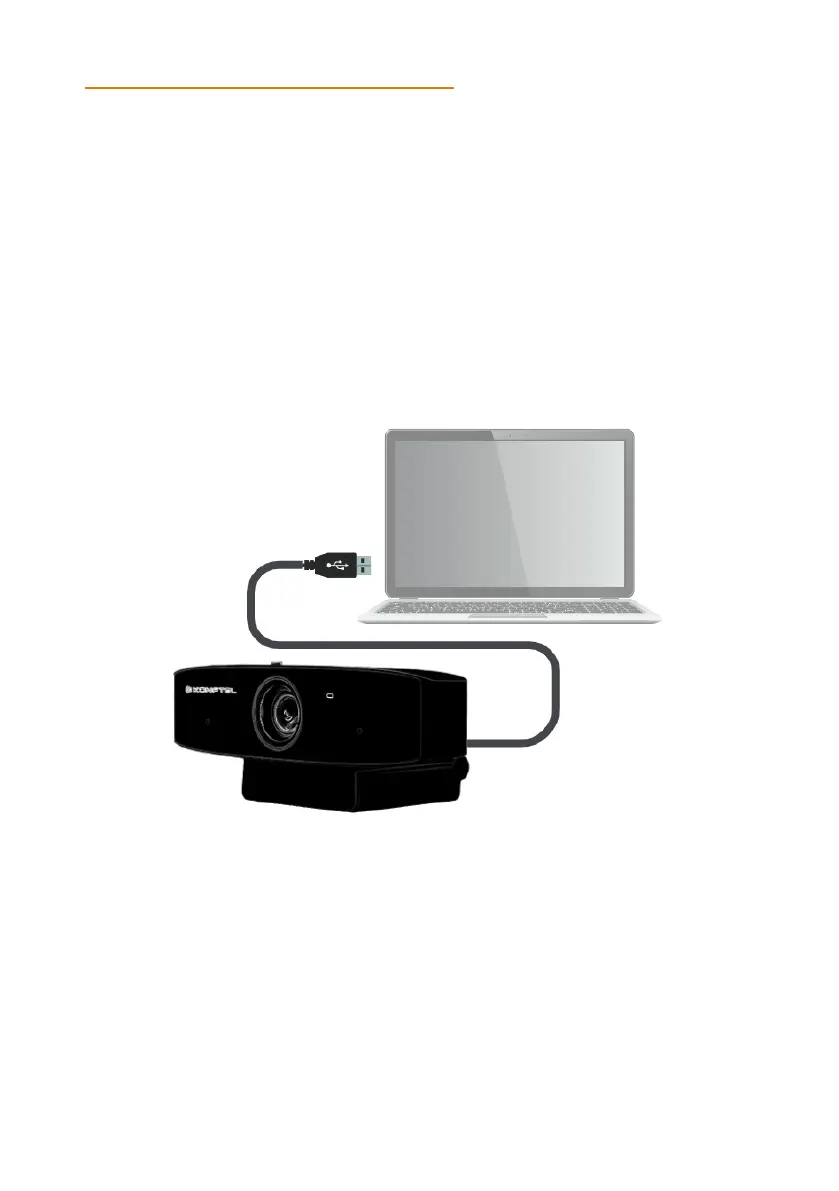 Connect your Konftel Cam10 camera to the USB port on your laptop or computer