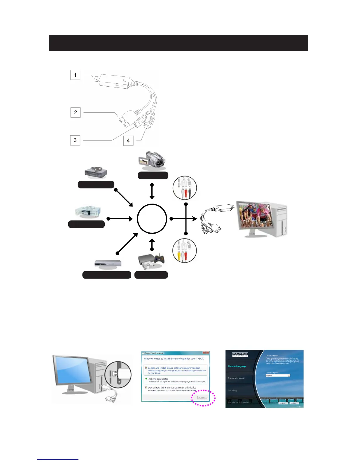 Vaihe 1: Liitä CMP-USBVG6 tietokoneesi USB-porttiin ennen asennuslevyn asettamista CD-ROM