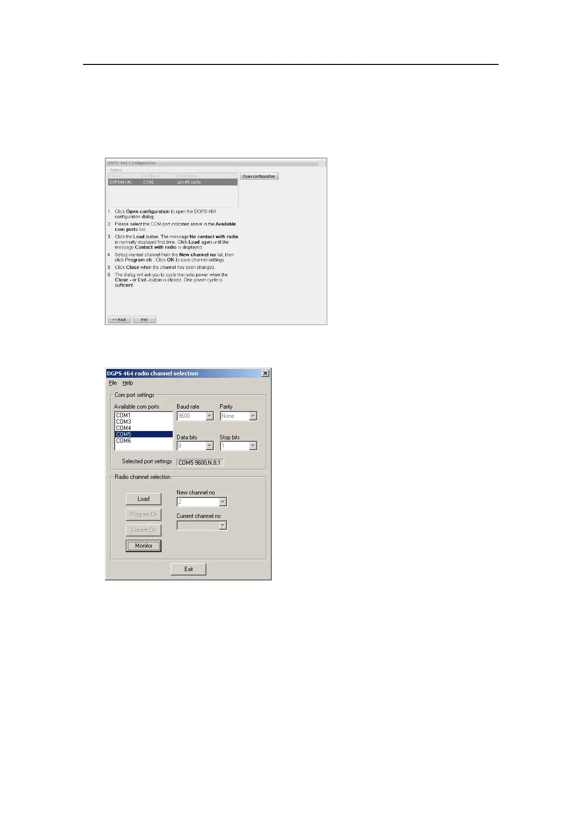 5ObservethattheDGPS464radiochannelselectiondialogueopens.