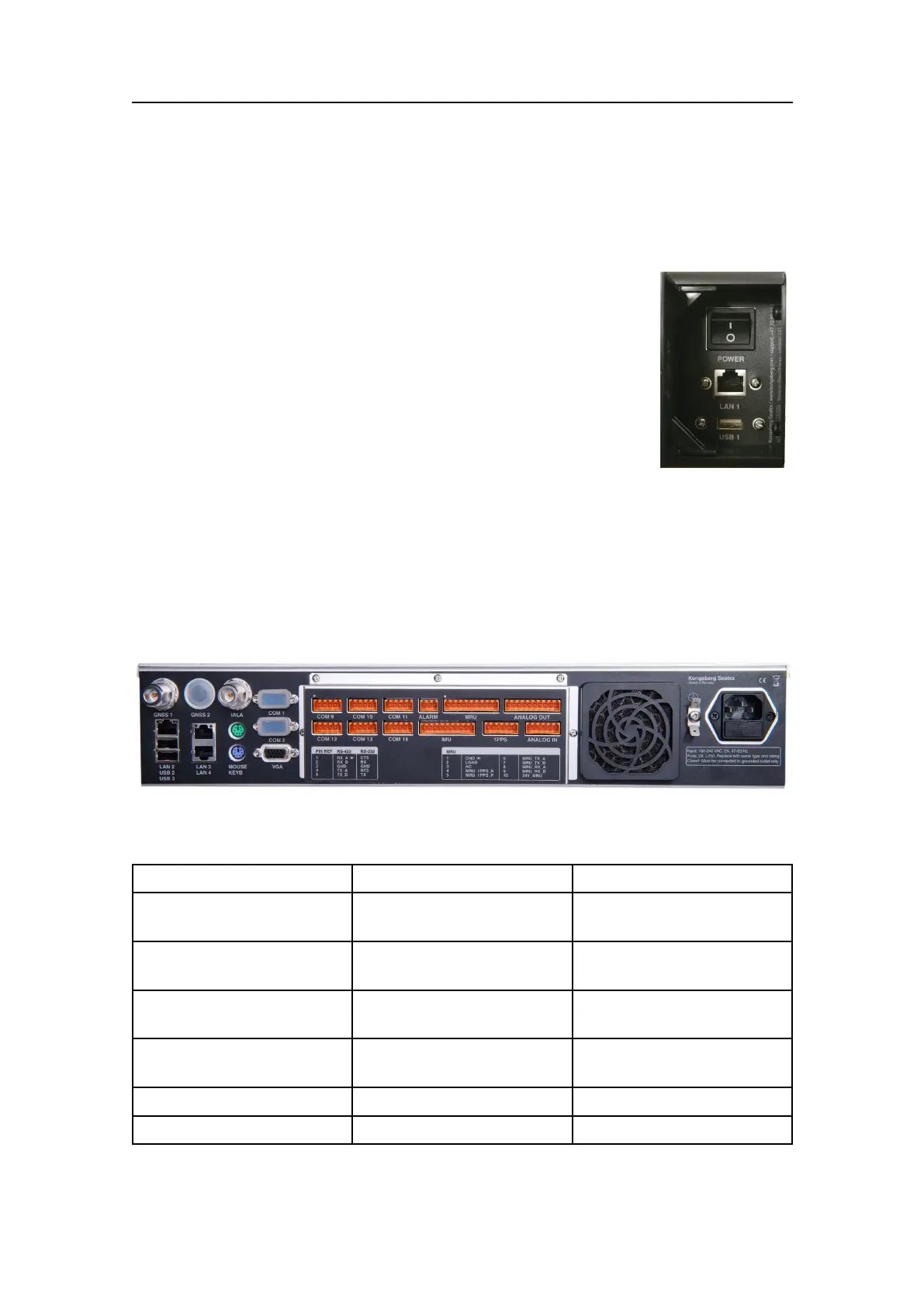 Table1ConnectorsattherearoftheProcessingUnit