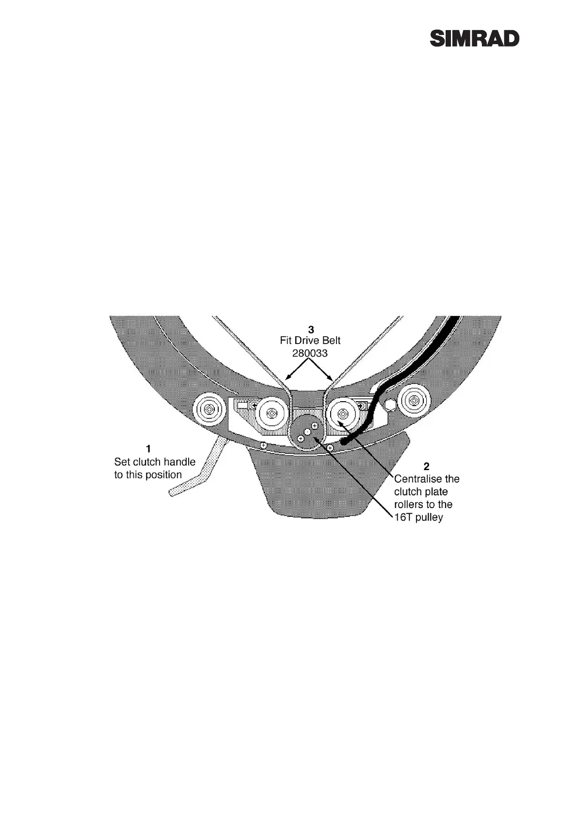 tant about the 16T drive pulley. Fit belt as shown, and push clutch lever up to capture