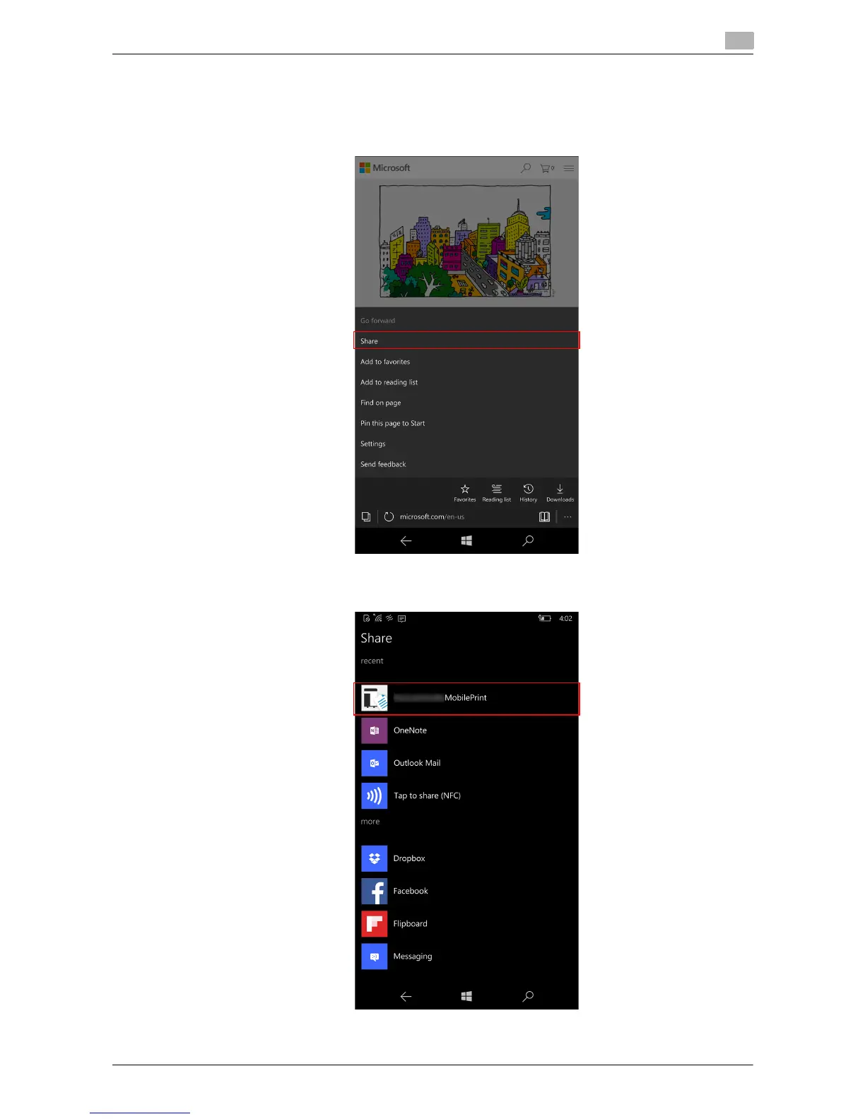 1 Open the target Web page from the Browser application, then select [Share] from the operating system