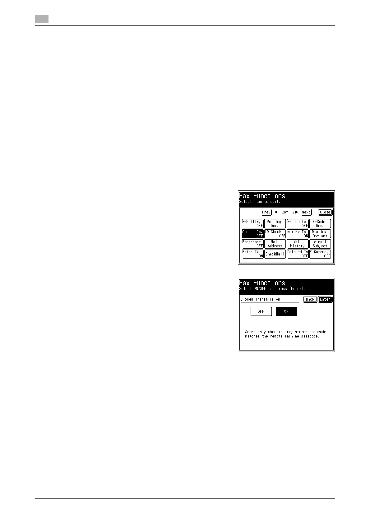 When closed transmission is set, fax messages can only be transmitted to machines that are the same as