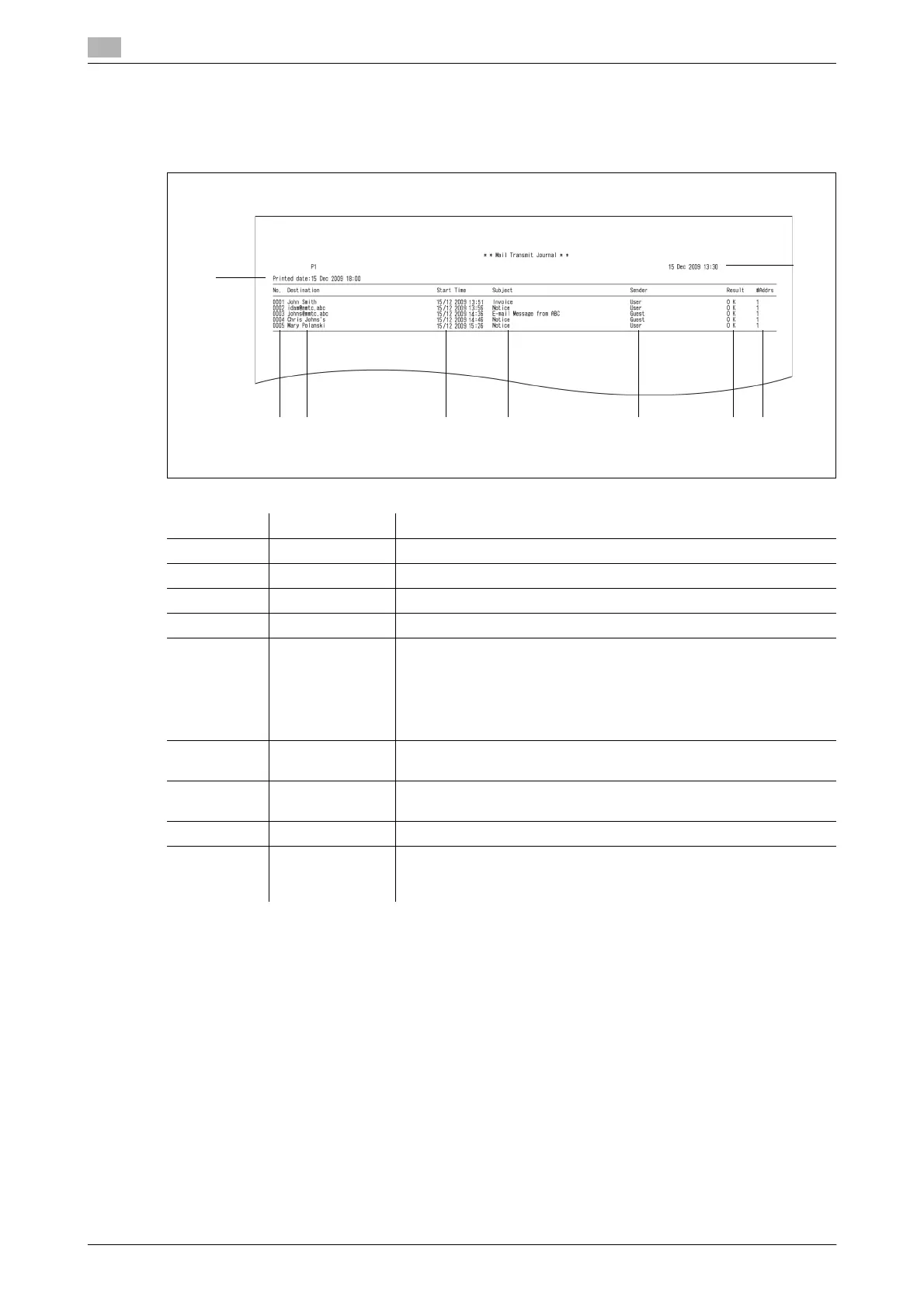 2 Destination The destination name or e-mail address