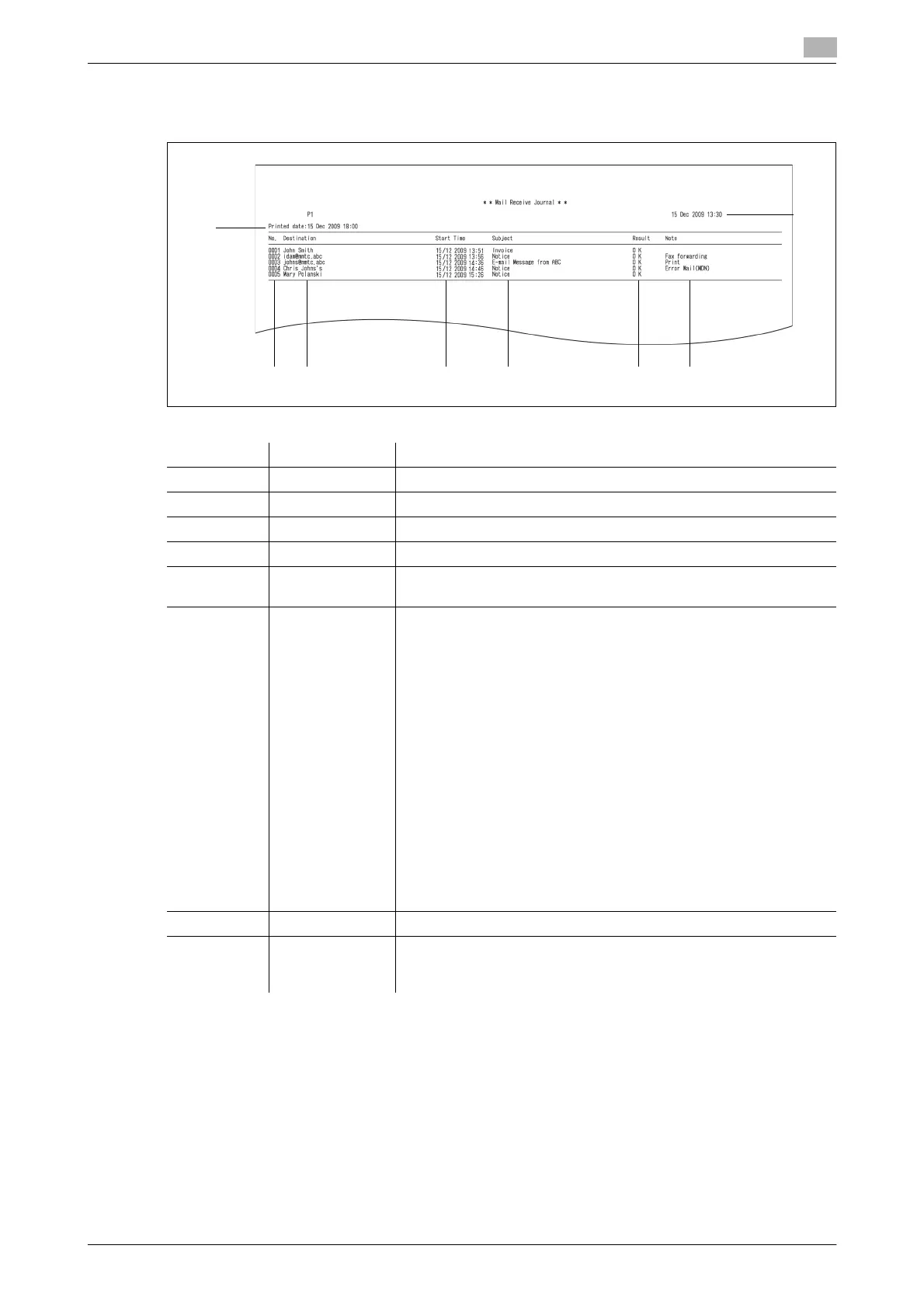 2 Destination The destination name or e-mail address