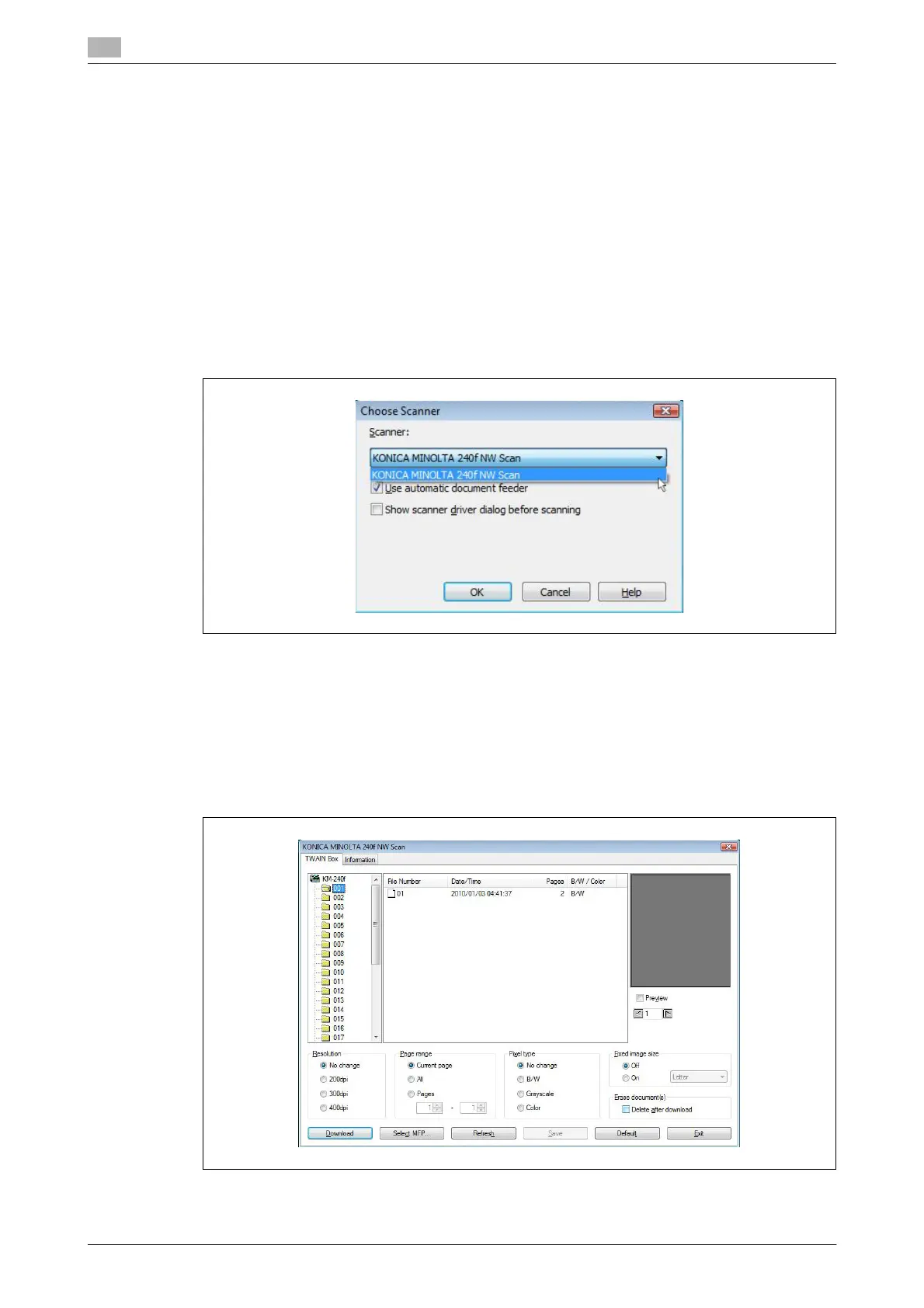 2 Click [Scan] and select "KONICA MINOLTA 240f NW Scan".
