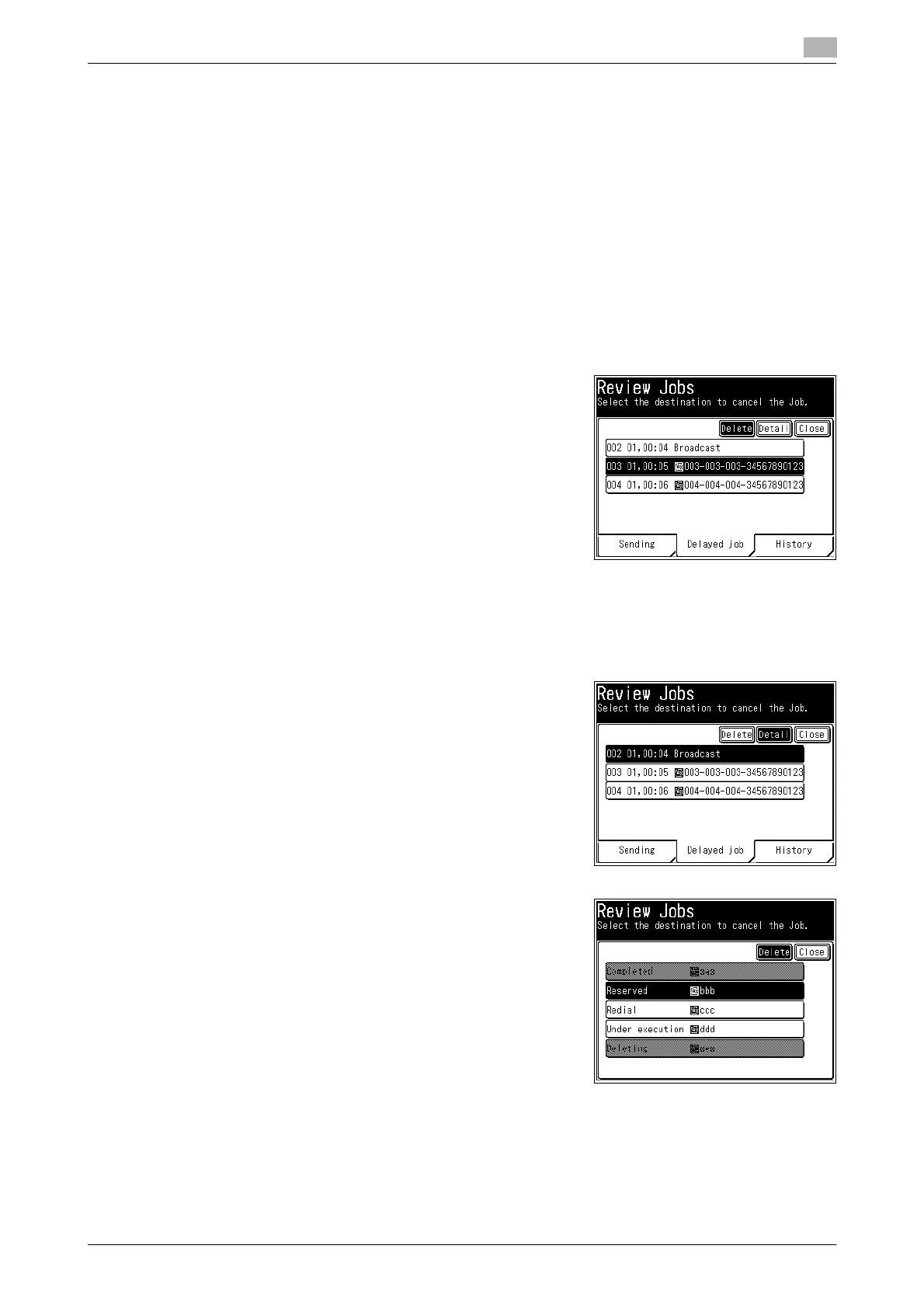 ment, select the document to cancel, and press [Delete].