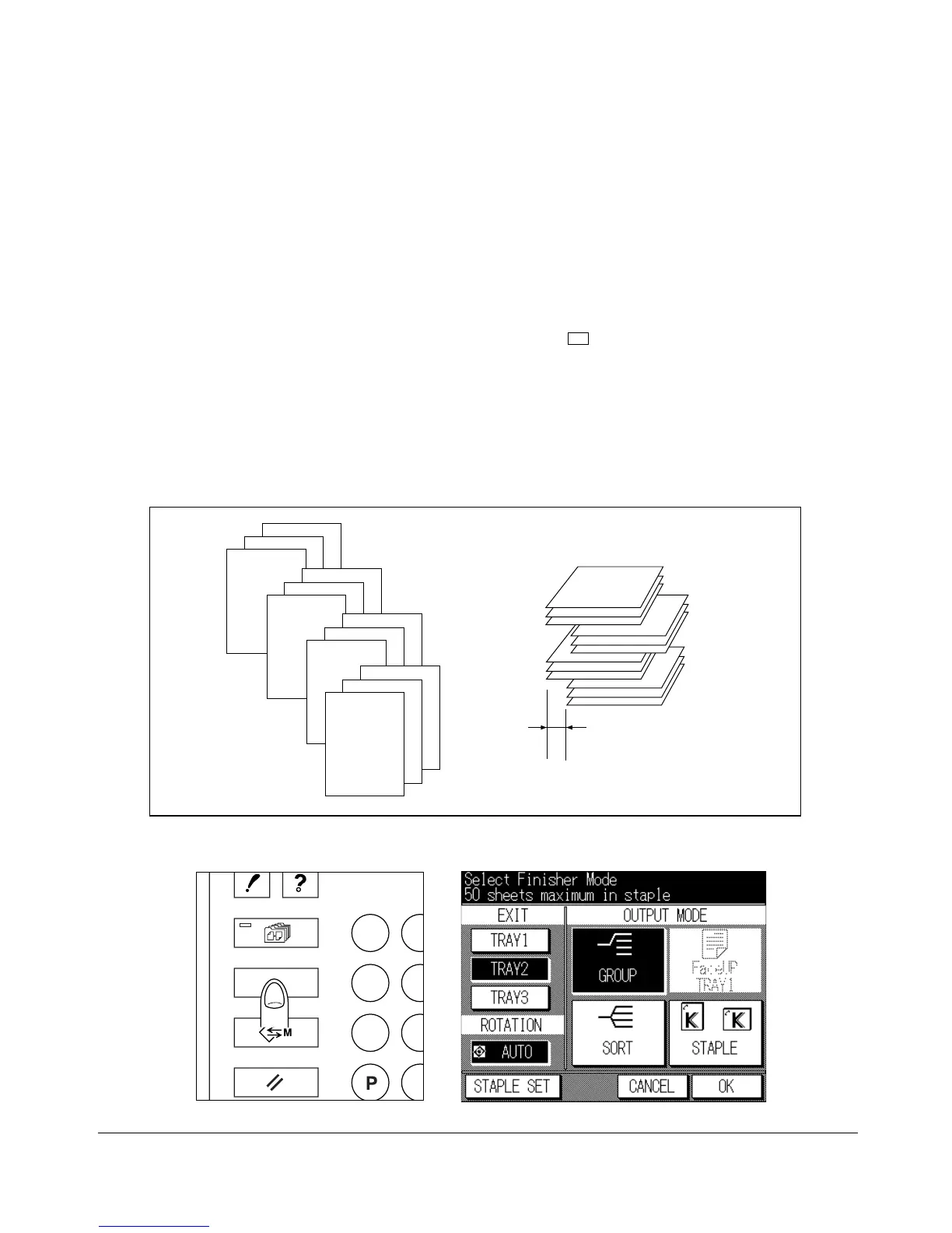 the Finisher middle/lower tray. Grouped sets cannot be stapled.