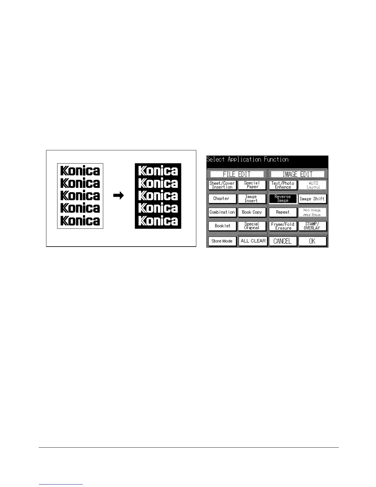 2 Touch Reverse Image. The incompatible function keys will be dimmed to show