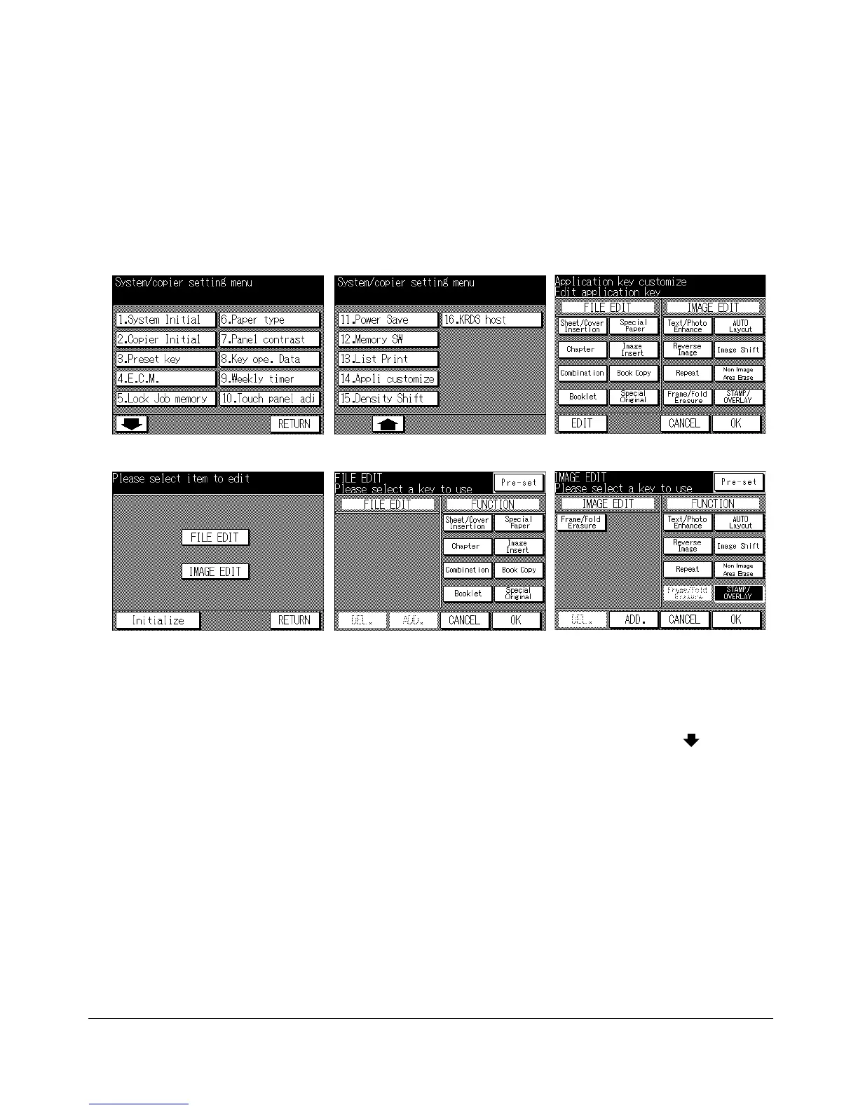 Key Operator Mode Screen 1 Key Operator Mode Screen 2 Application Customize Screen