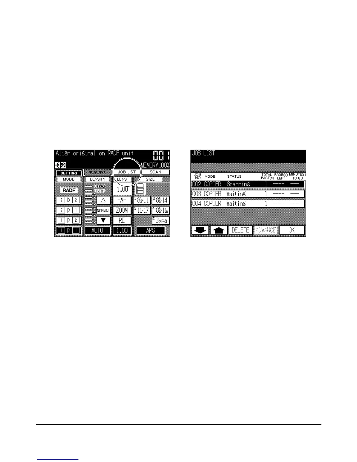 3 To return to the Basic Screen, touch OK on the Job List Screen.