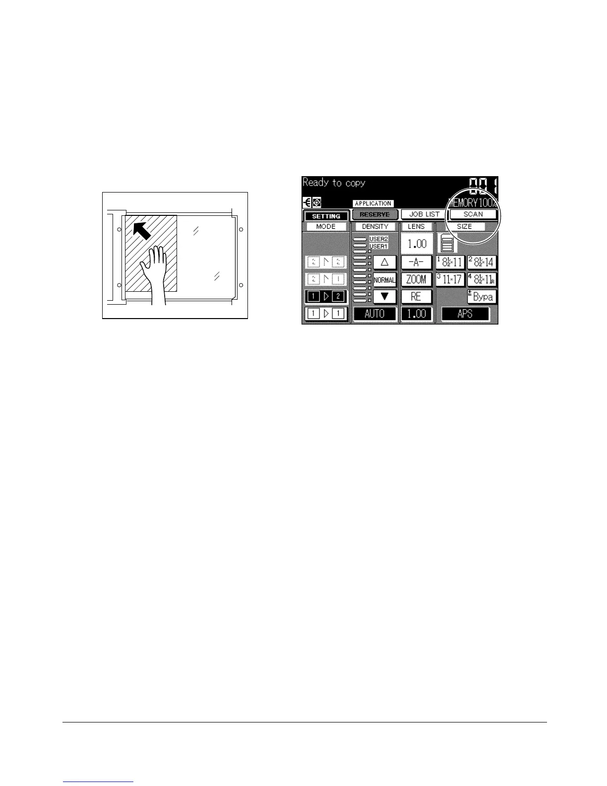 keep the document feeder open throughout the procedure so that the selected function can operate