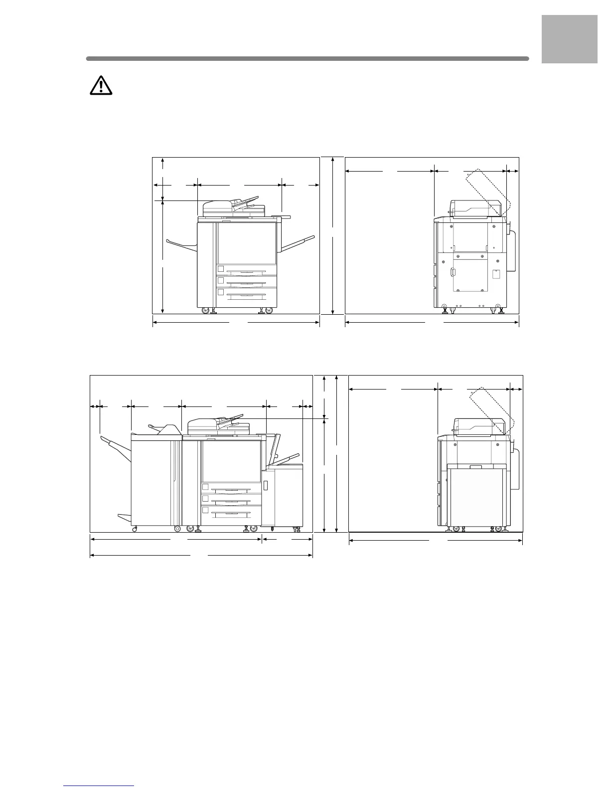 Allow sufficient space for facilitating copy operation, changing parts, and periodic