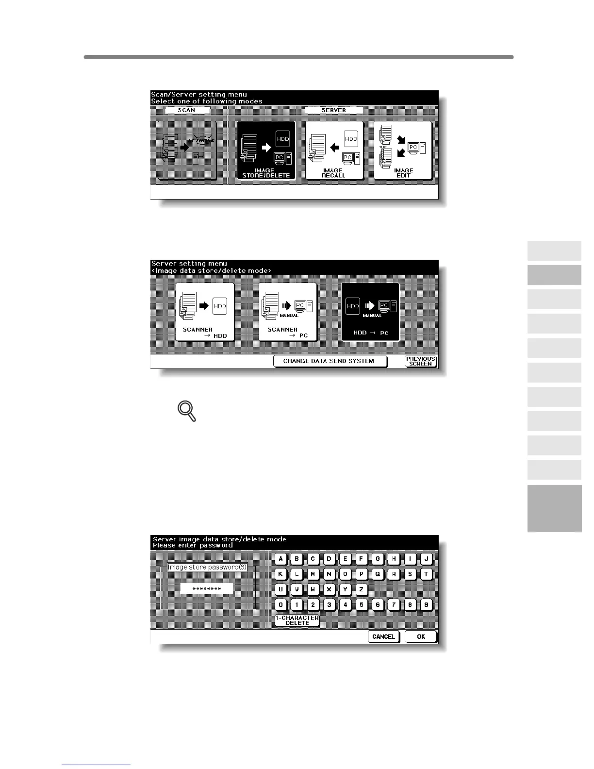 • The HDD→ PC key on the Image Data Store/Delete Site Selection