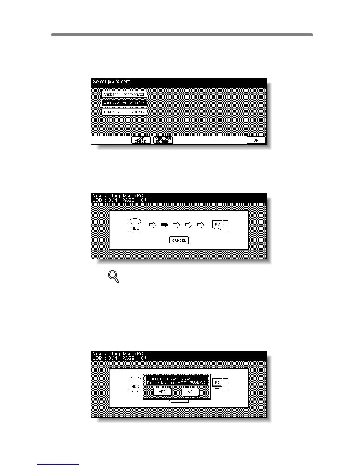 Touch YES to delete the data from HDD, or touch NO to leave it in HDD.