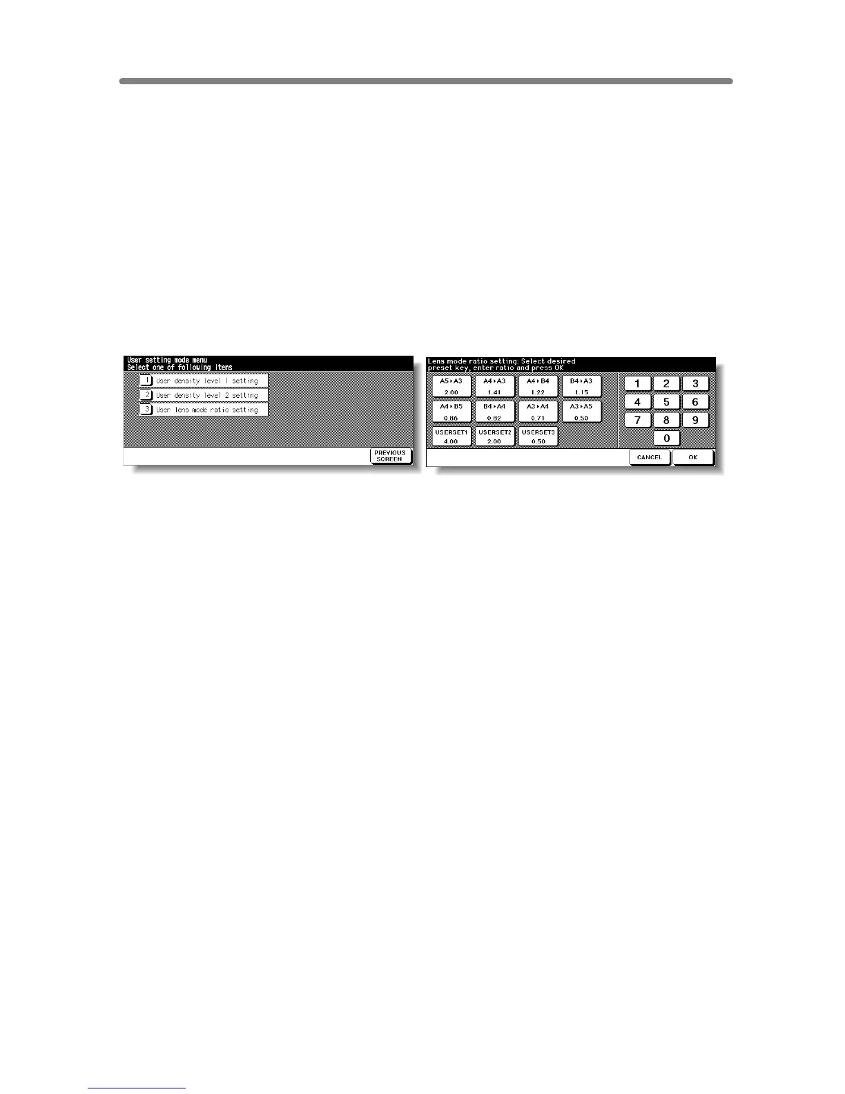 line on the User Lens Mode Ratio Setting Screen. The preset keys in the top