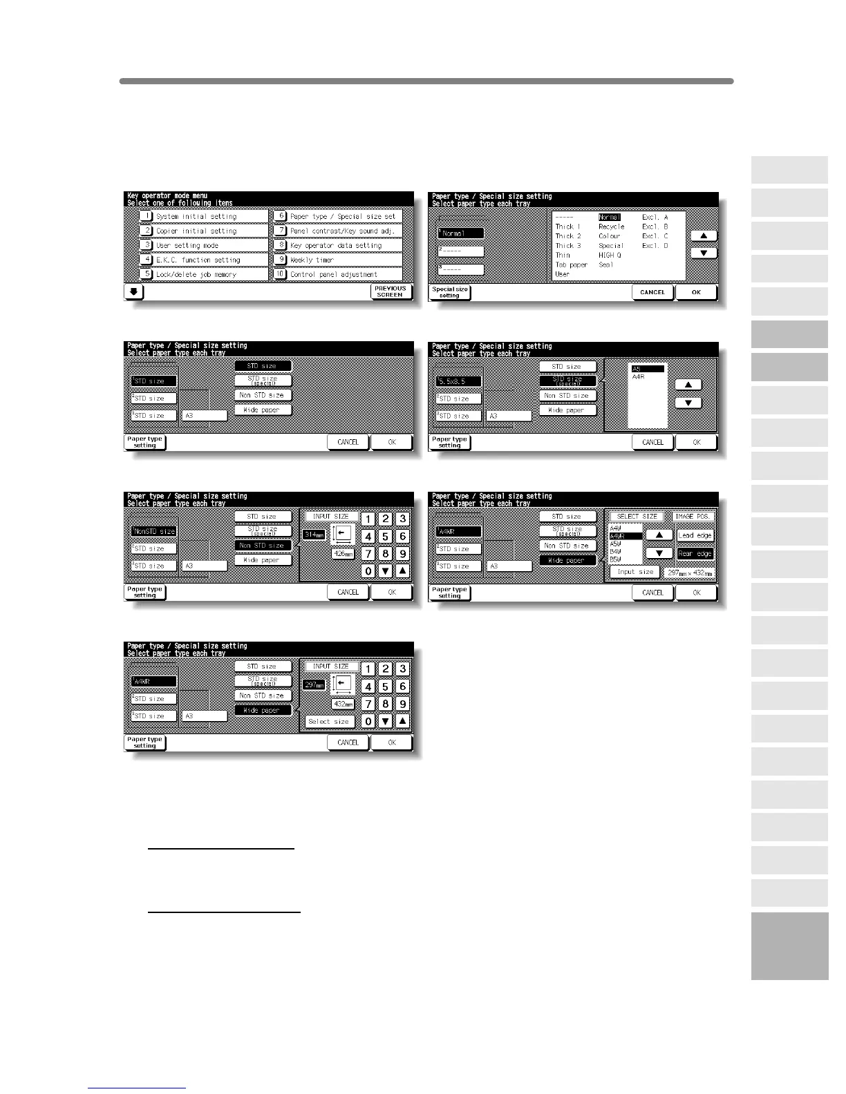 Special Size Setting Screen (Non STD size) Special Size Setting Screen (Wide size (select))