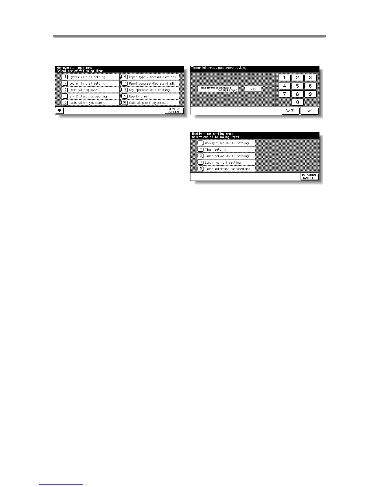 Key Operator Mode Screen Weekly Timer Master Key Code Screen