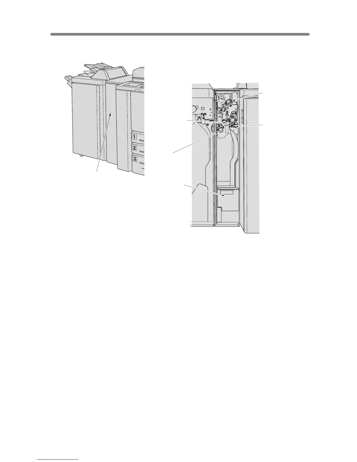 1 Punching unit front door opens to allow removal of mishandled paper or waste