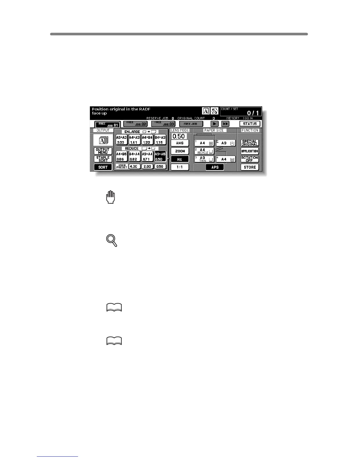 When starting a new copying job, be sure to close the RADF securely, then
