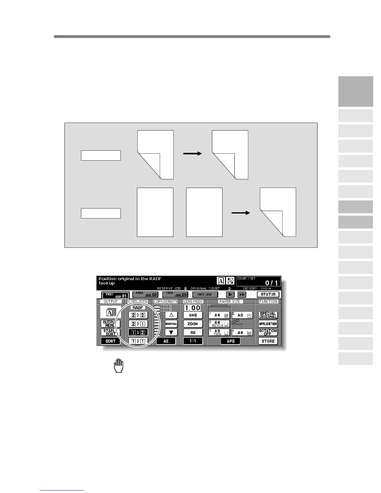 When starting a new copying job, be sure to close the RADF securely, then
