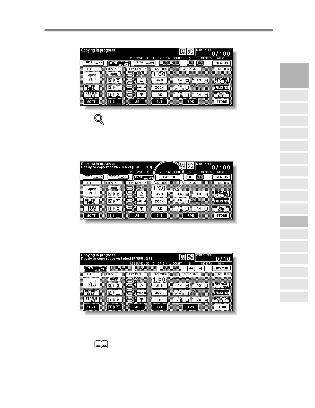 screen, the arrow key to scroll to that job will blink. See p. 5-8 to p. 5-10.