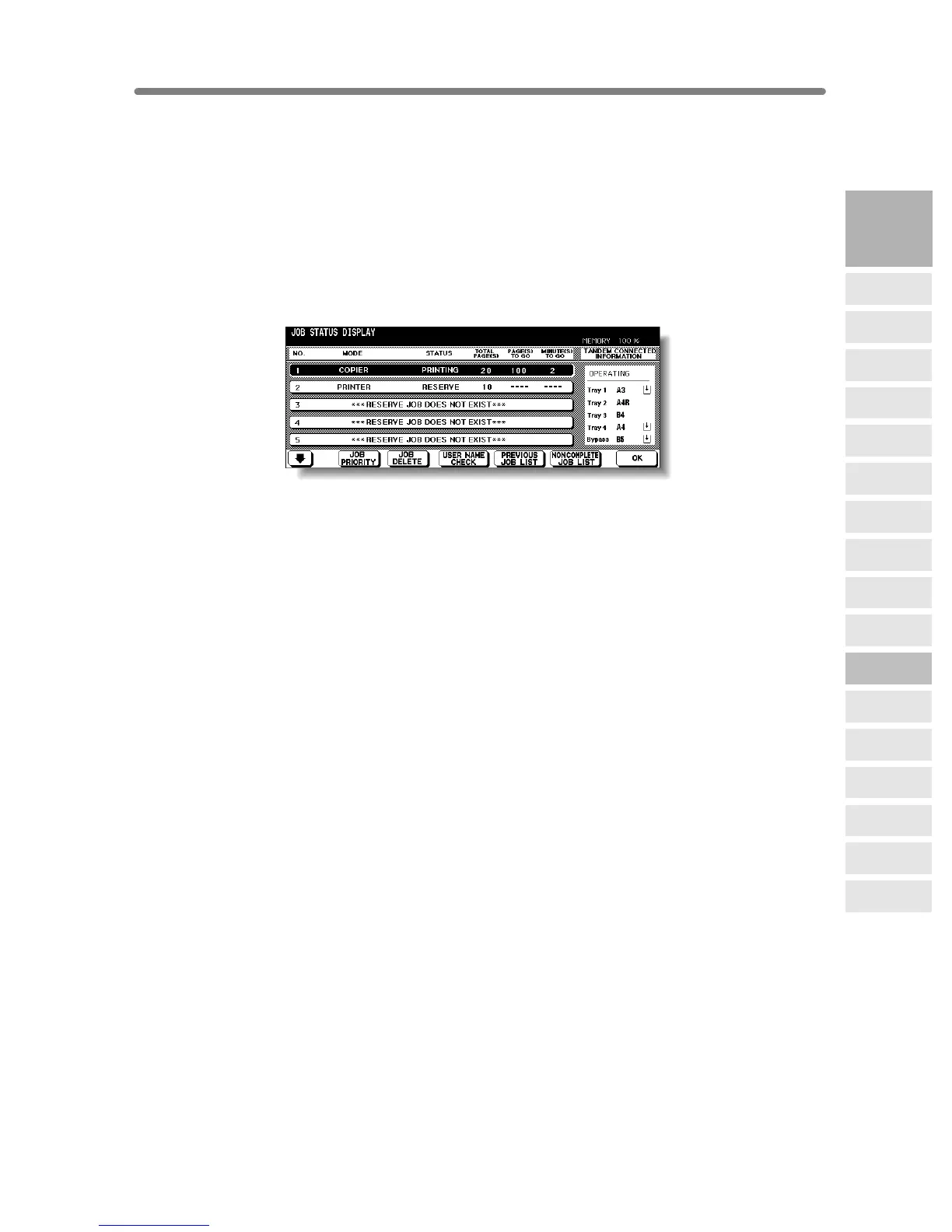 Displays the tray information and current status of the other machine when
