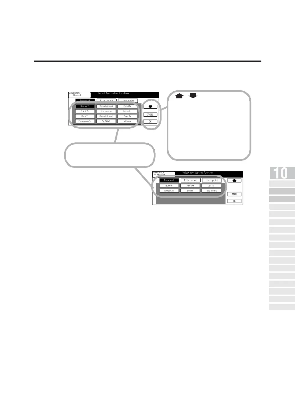 The FAX Application Menu screen consists of two screens.