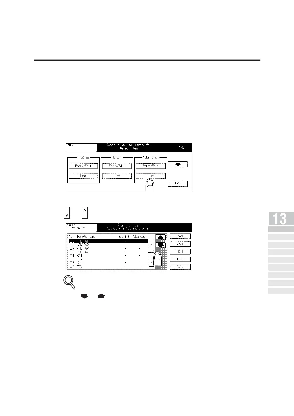 • By pressing SEARCH, the remote station name search screen is displayed. Then, you