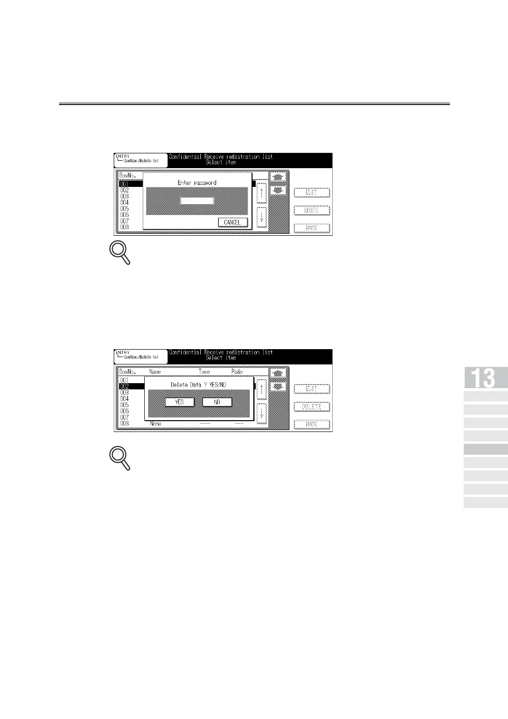 If you press NO, you return to the confidential/bulletin registration list screen.