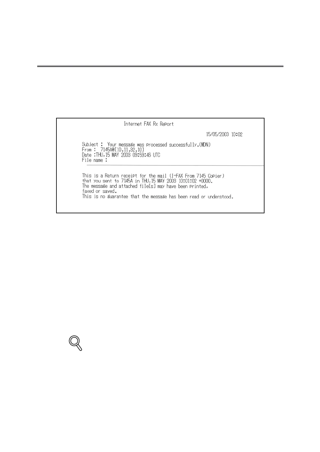 Details of Internet FAX Rx Report (MDN) vary depending on the remote stations.