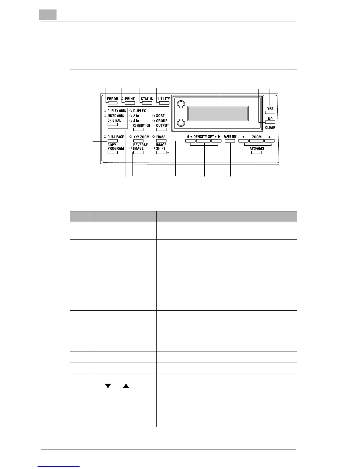2.6 Names of Control Panel Parts and Their Functions