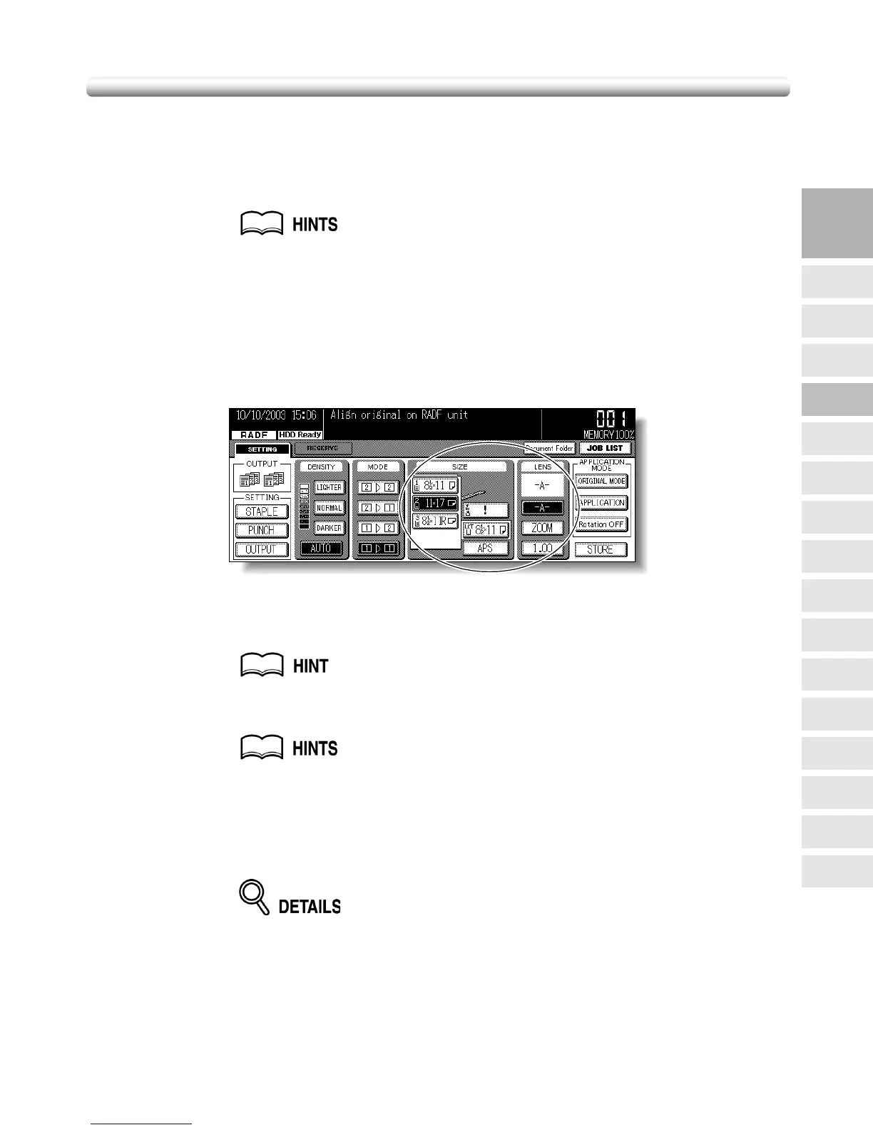 • See p. 10-7 to p. 10-9 for original sizes detectable from the RADF or on the