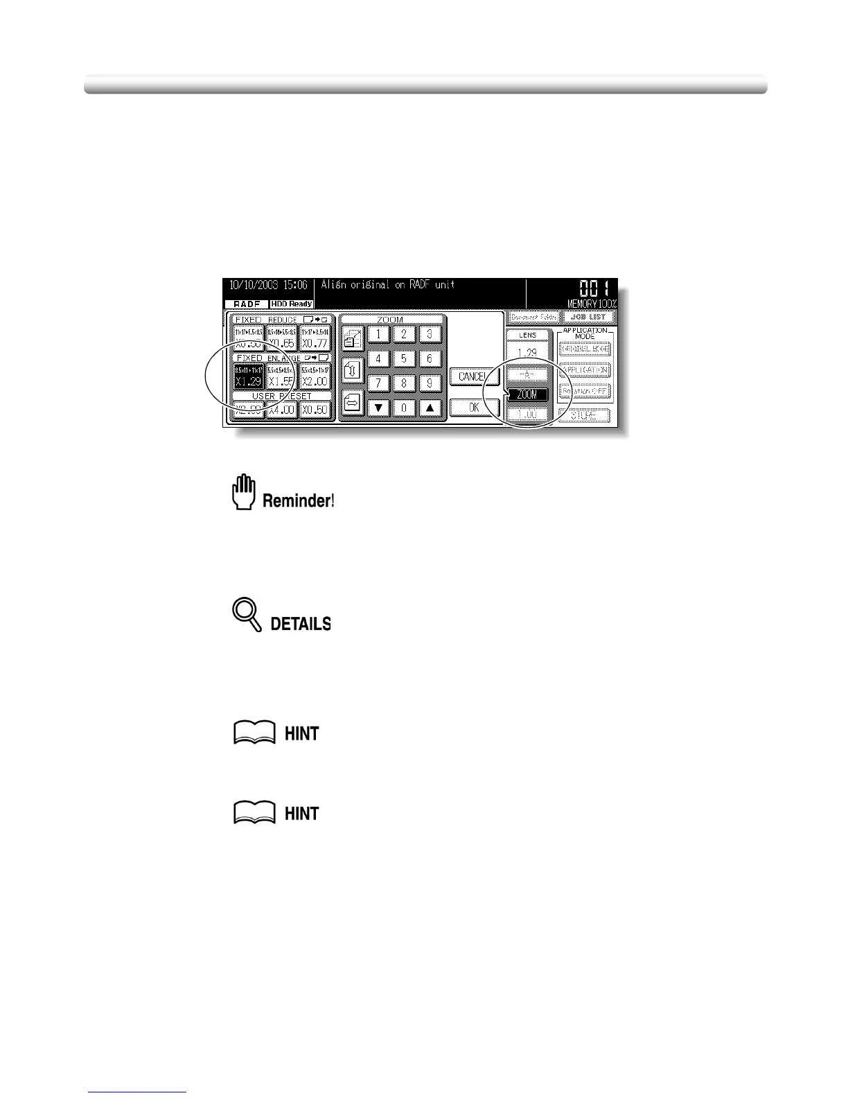 Three user preset ratios are adjustable by the Key Operator. See p. 13-17.