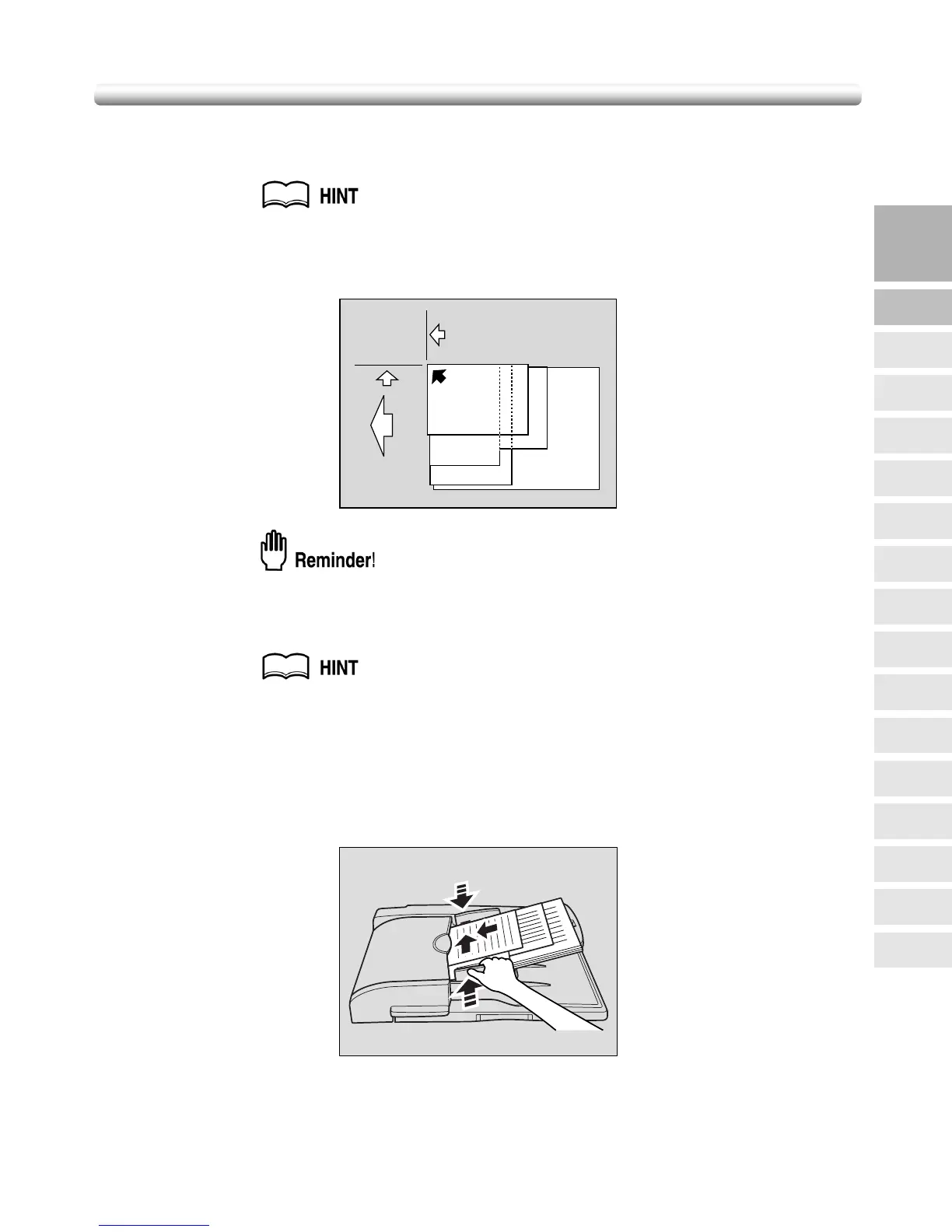 • Before placing originals in the tray, be sure the document feeder is fully