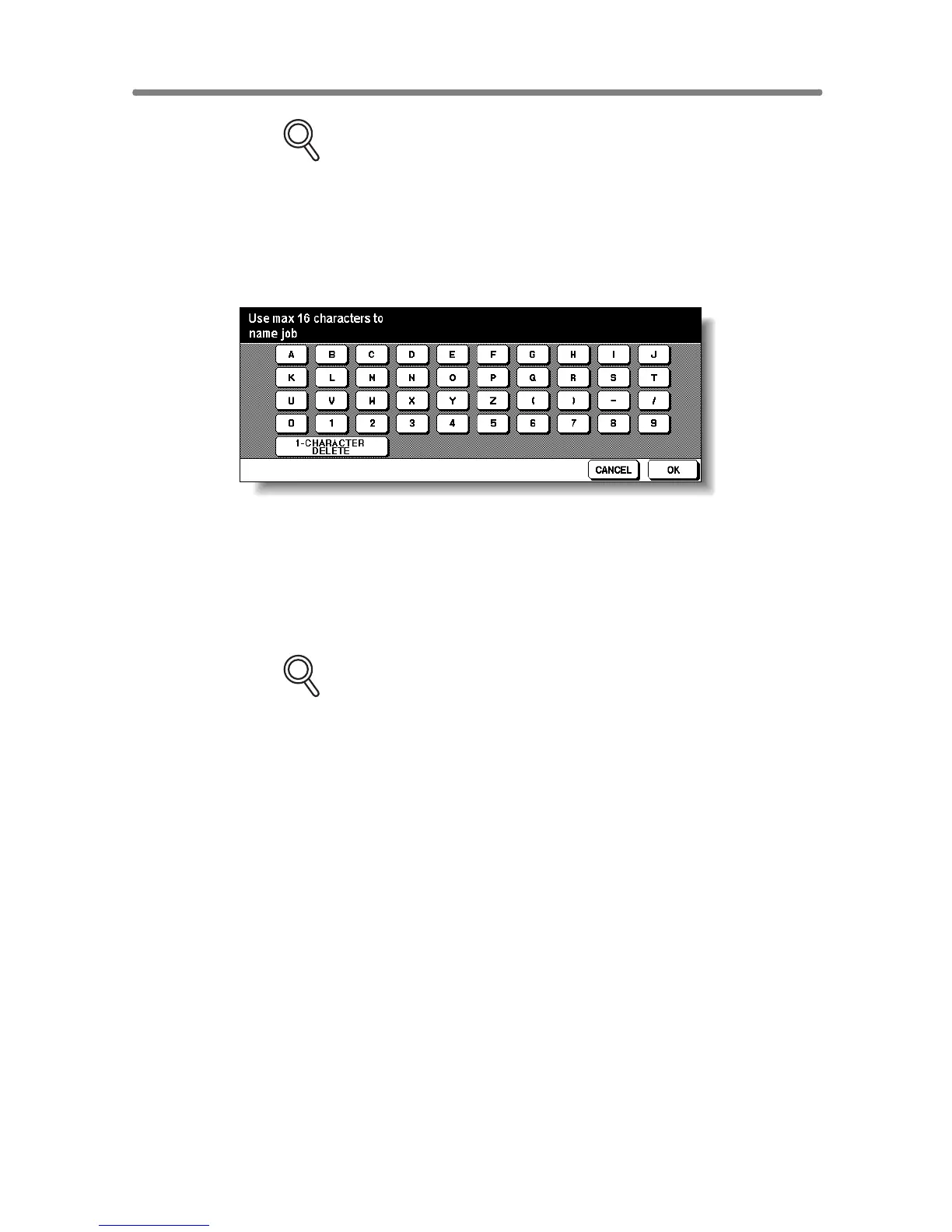 Enter a job name in up to 16 characters, using the touch screen alphabet