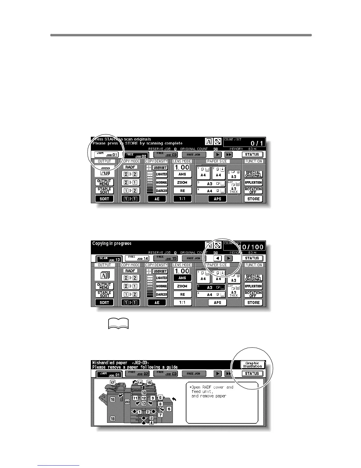 If ADD PAPER is displayed instead of JAM JOB, see p. 5-10.