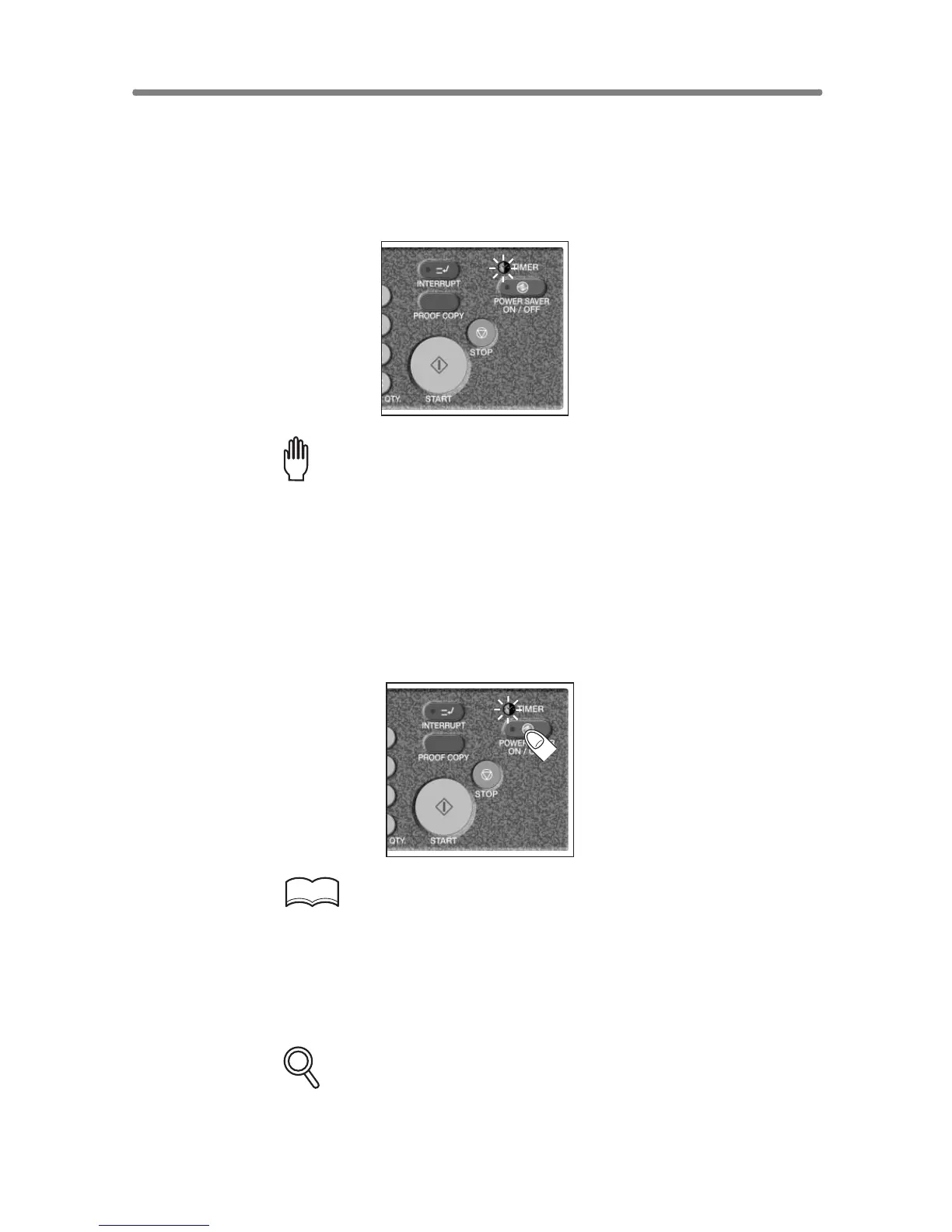 IMPORTANT: WHEN THE TIMER INDICATOR IS LIT, THE COPIER