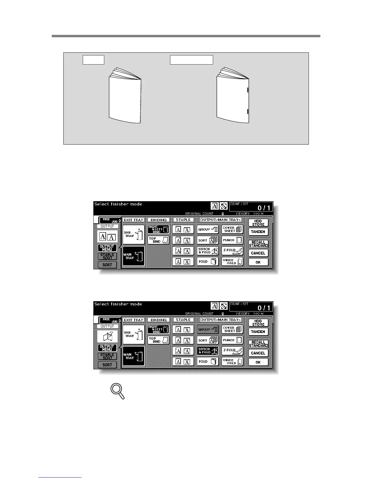 tray to Booklet tray. Notice that the arrow pointing from the MAIN TRAY