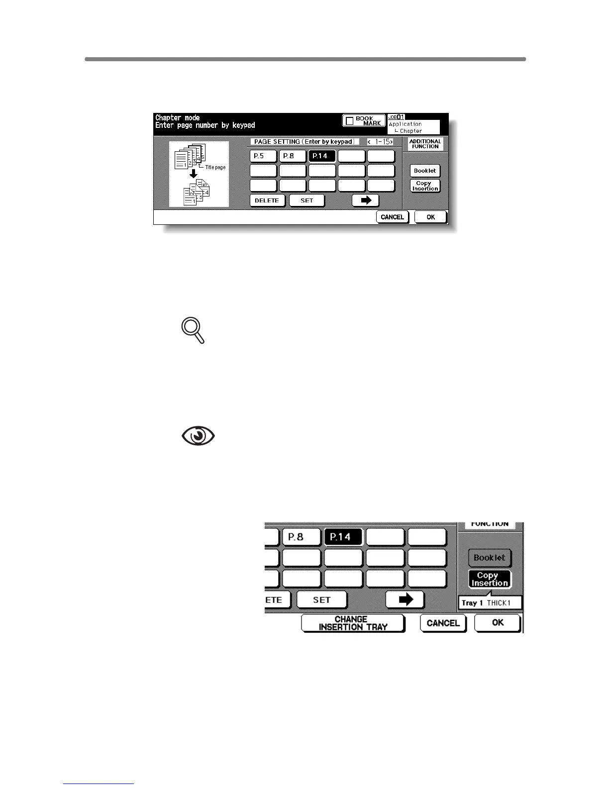 Touch Booklet on the Chapter Insertion Setting No. Screen to use this