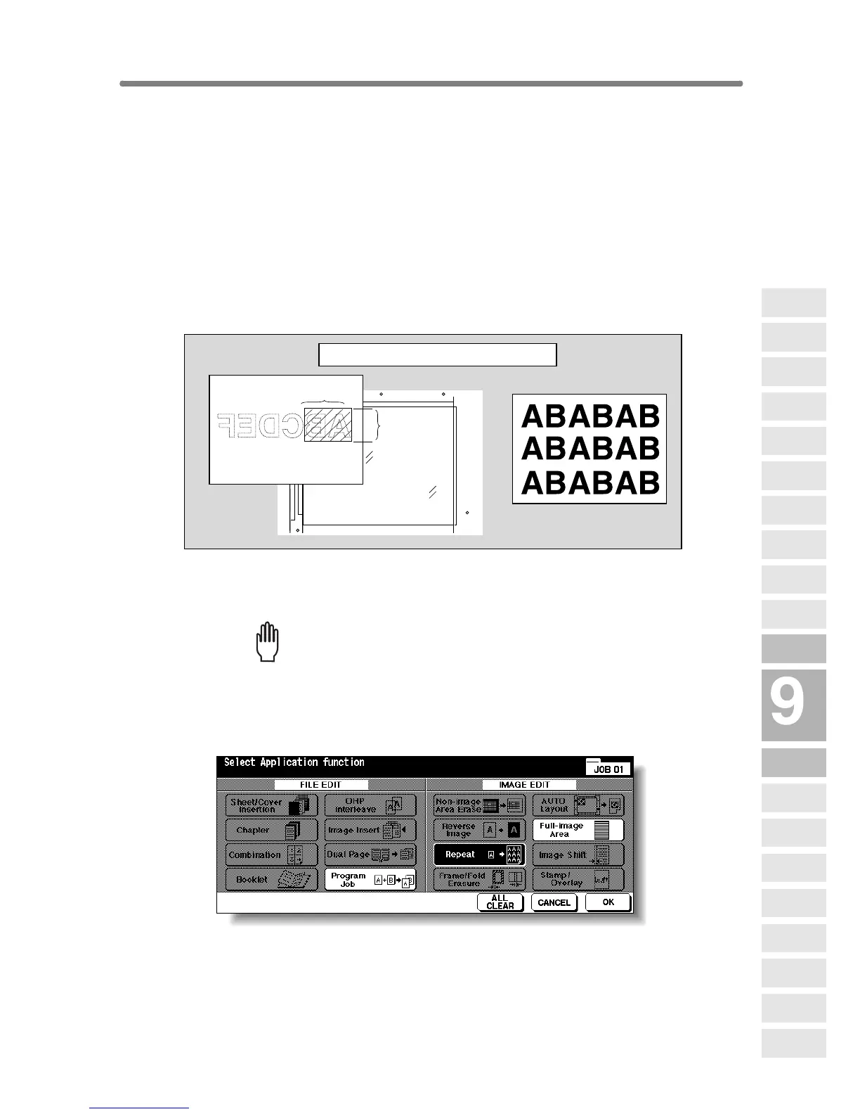 Use this function to repeat the selected image area of 10 mm ~ 150 mm in