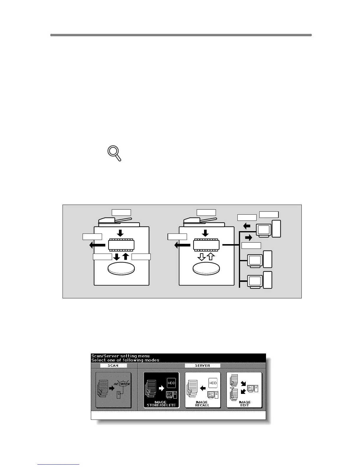 Use the Server function with HDD to accumulate scanned images into built-