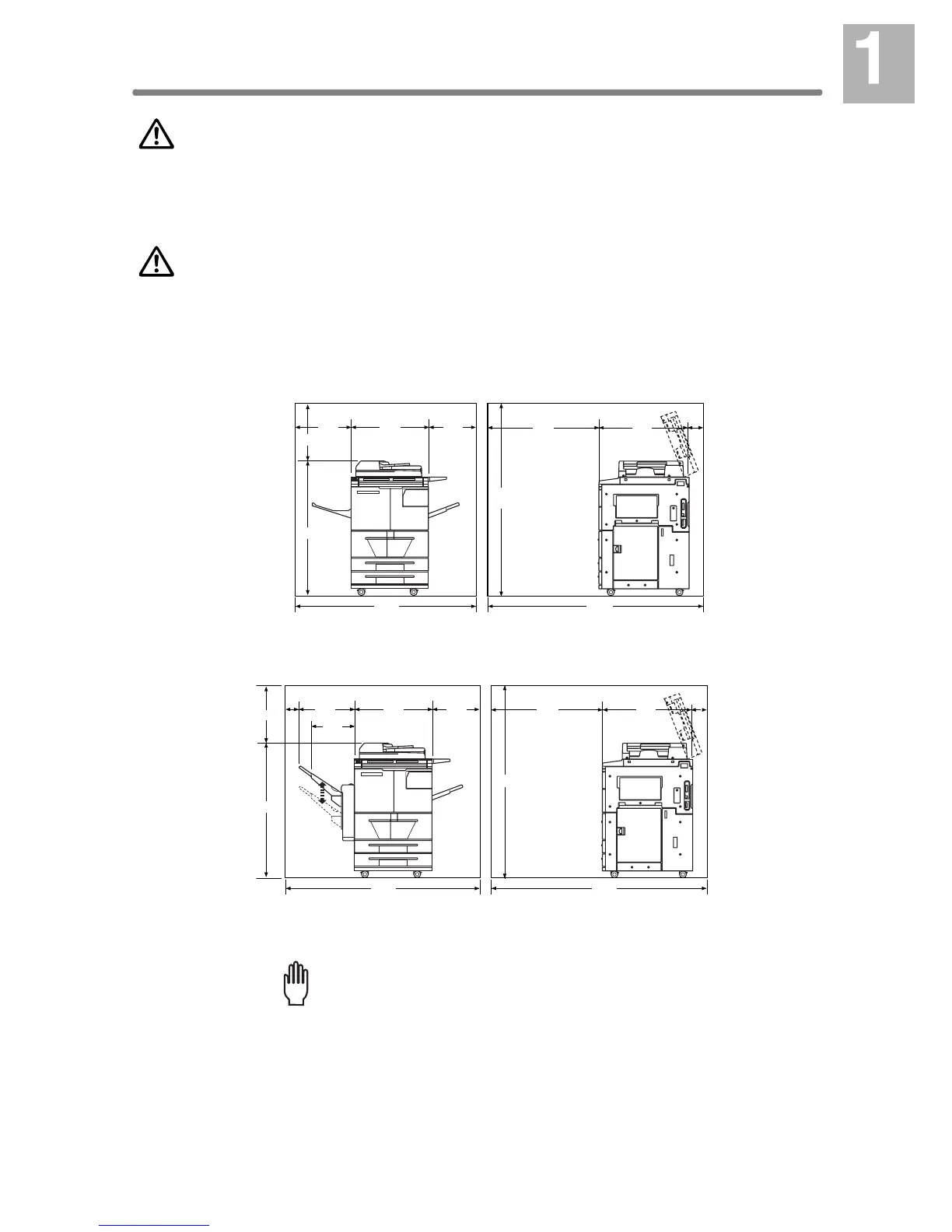 Allow sufficient space for facilitating copy operation, changing parts, and