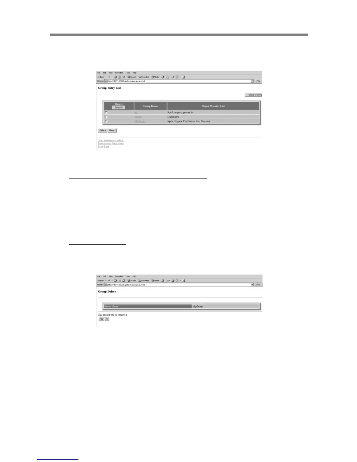 Check the group name to be deleted, then click on [Yes]. To cancel the