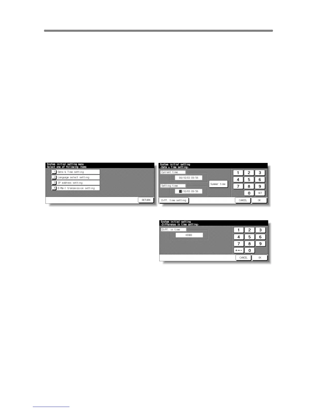 System Initial Setting Menu Screen Date & Time Setting Screen