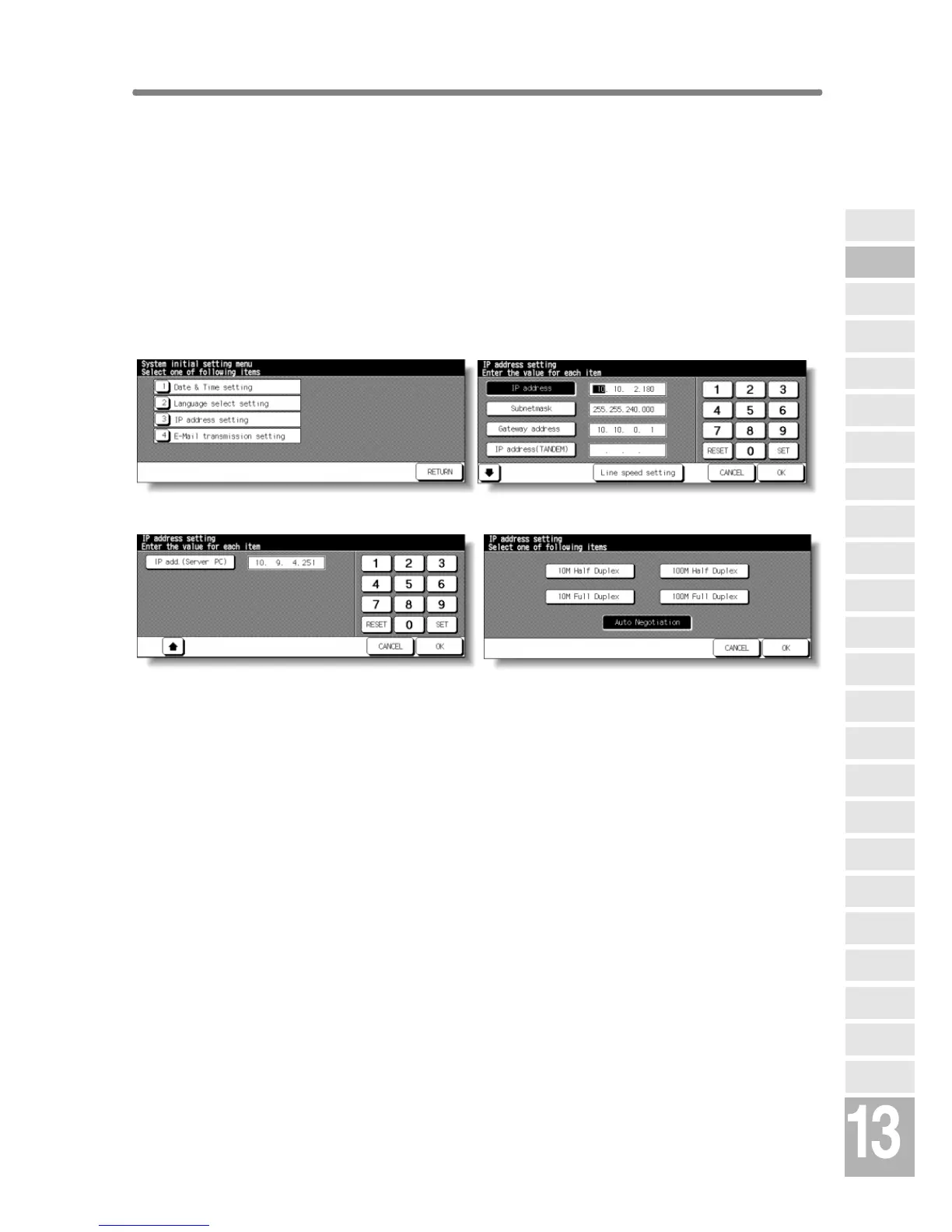 IP Address Setting Screen (next page) Line Speed Setting Screen