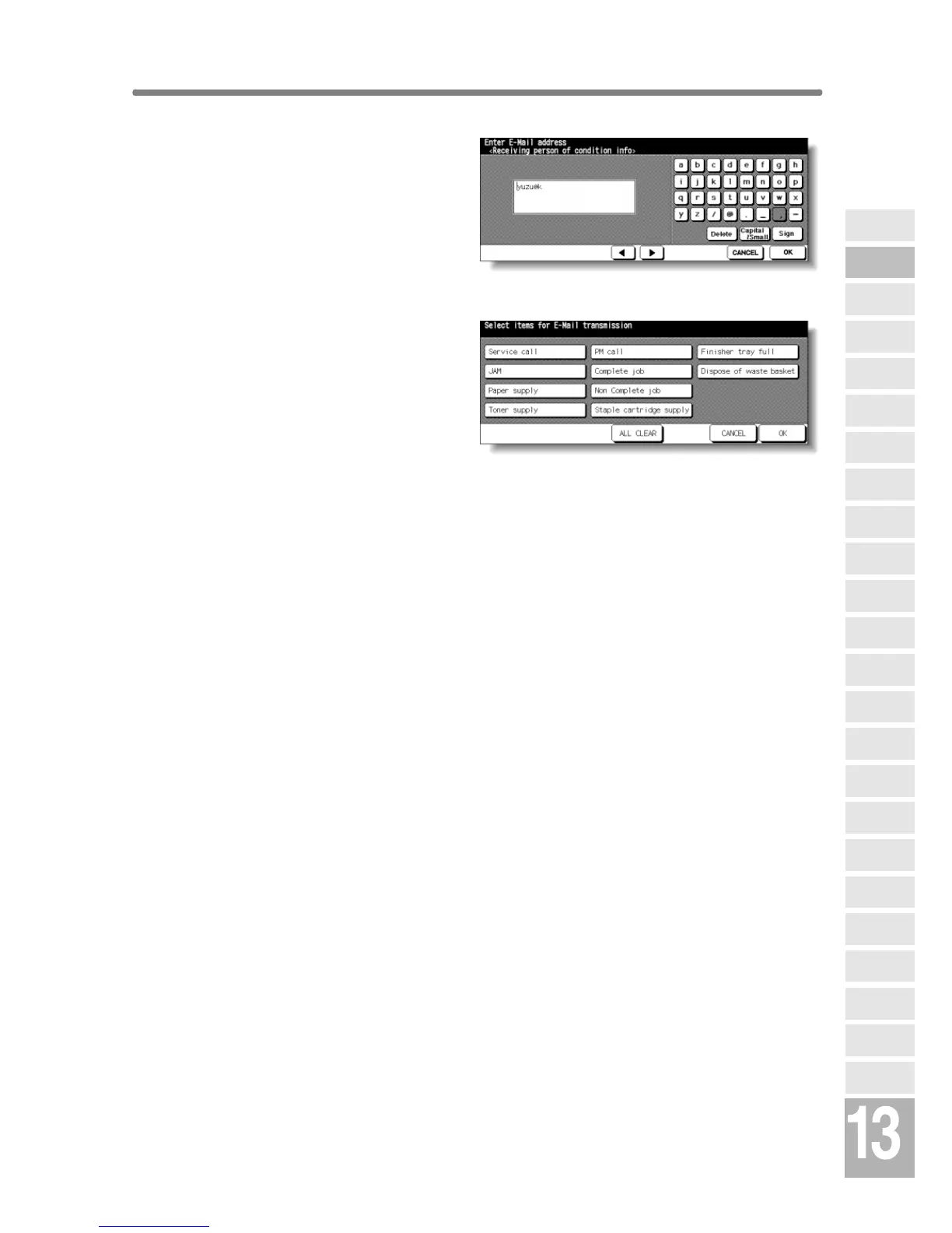 E-Mail Set (Condition Inform) Screen