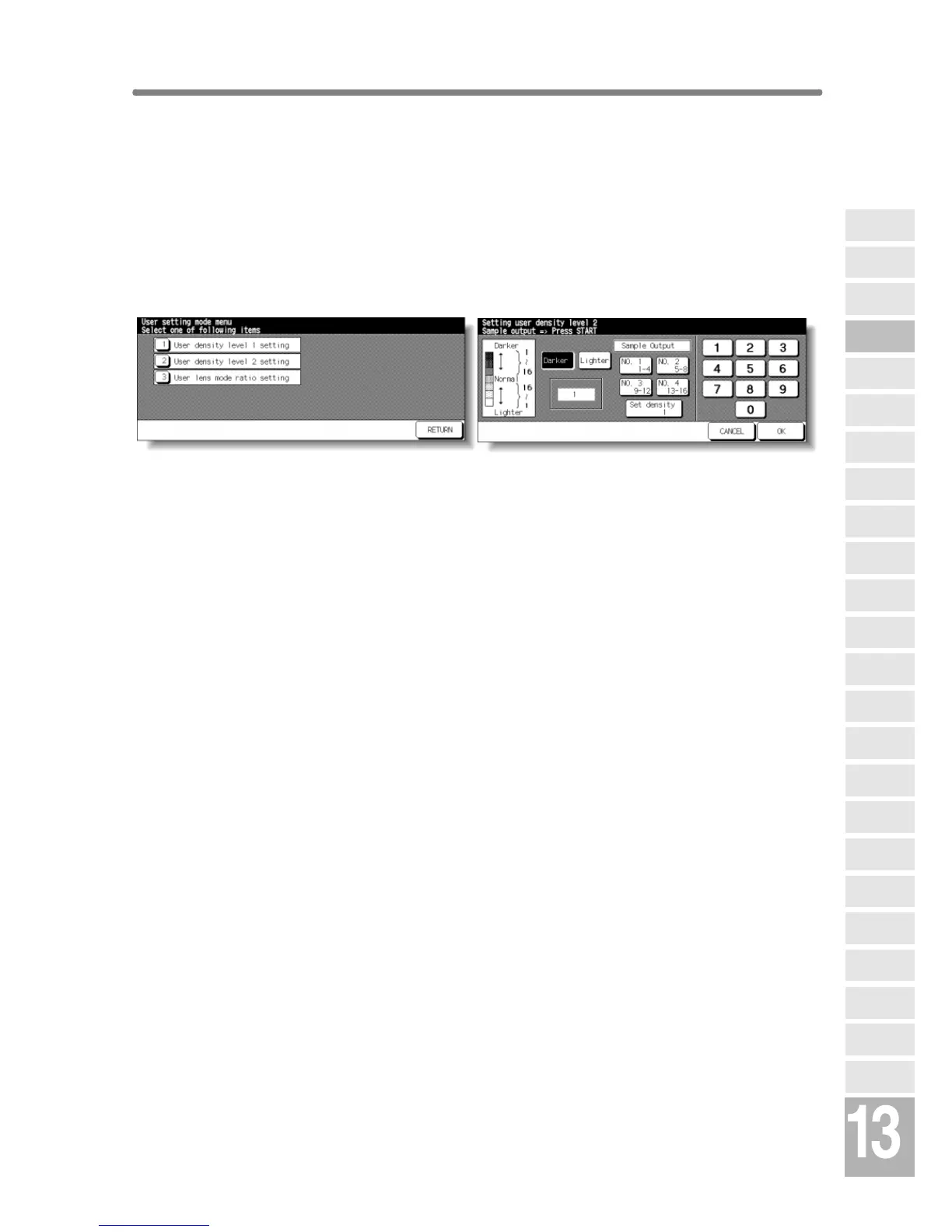 User Setting Mode Menu Screen User Density Level 2 Setting Screen